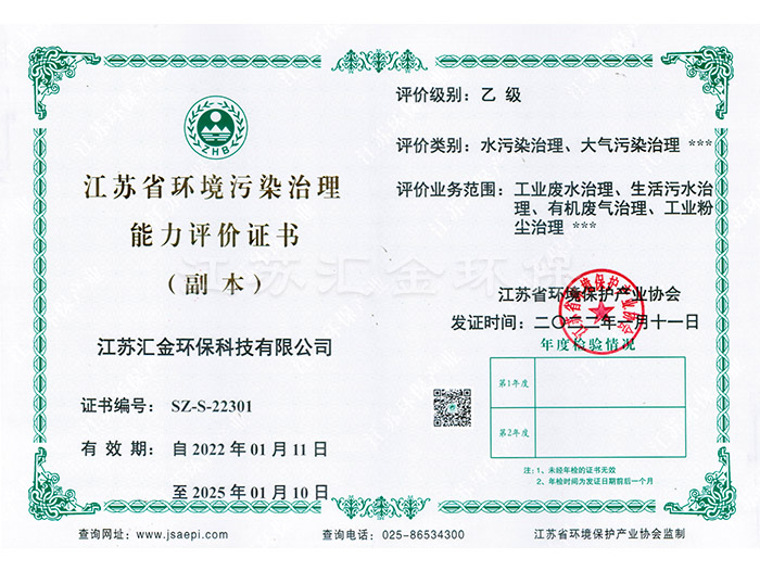 江蘇省環(huán)境污染治理能力評價(jià)證書
